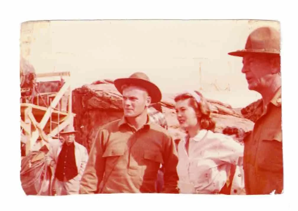 My mother and I spent a few days on location with my father out in St. George, Utah. It was pretty desolate in those days, but they were shooting in beautiful, stark, dramatic land, desert harshness, cruel hot sun, and a railroad track that was constructed and led to nowhere. However there was a small paved road that led to Las Vegas some 120 miles to temptation!